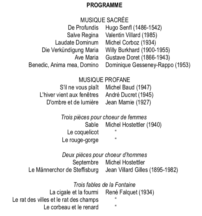Concert de musique chorale suisse, 21 septembre à Perroy, et 23 septembre à St-Sulpice !